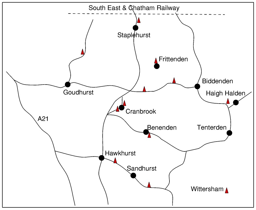 A bottling plant, however, must have been installed soon after this description was published as Cranbrook Museum has in its collection some bottles, embossed with Sharpe & Winch and older residents recall the existence of a bottling plant there after the 1914-18 war. Other modern developments included the purchase of a Ford T lorry, to assist with deliveries. However, the 'modern tendency' mentioned above continued apace after 1918 and Cranbrook's brewery was bought for £20,000 by Frederick Leney of Wateringbury in July 1928 (20). To be more precise, this was the price paid for thirteen freehold licensed premises and it is clear that Sharpe and Winch between them had steadily built up a chain of tied houses. The brewery buildings were not sold, although hops, malt and sugar as well as some bottles and cooperage materials were included in the sale. Presumably Leney's brewery at Wateringbury had all the capacity needed to keep the Sharpe & Winch houses supplied. However, hardly had the ink dried on the contract but Leney's business was taken over by Whitbread and all Kentish identity soon disappeared. Local residents recall that other public houses were owned or supplied by Sharpe & Winch (not to be confused with the Maidstone brewer, Style & Winch, who owned the White Horse in Cranbrook). These included the Bull and the Bird-in-Hand, both in Stone Street, Cranbrook, but both had ceased to be public houses soon after the first war. The Bull closed its doors in about 1925 and although the buildings on the street were not demolished until well into the thirties, the premises behind were leased to a Mr L Green, a motor engineer, while the Bird-in-Hand reverted to a domestic dwelling.
