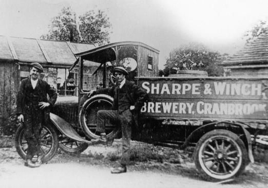 A bottling plant, however, must have been installed soon after this description was published as Cranbrook Museum has in its collection some bottles, embossed with Sharpe & Winch and older residents recall the existence of a bottling plant there after the 1914-18 war. Other modern developments included the purchase of a Ford T lorry, to assist with deliveries. However, the 'modern tendency' mentioned above continued apace after 1918 and Cranbrook's brewery was bought for £20,000 by Frederick Leney of Wateringbury in July 1928 (20). To be more precise, this was the price paid for thirteen freehold licensed premises and it is clear that Sharpe and Winch between them had steadily built up a chain of tied houses. The brewery buildings were not sold, although hops, malt and sugar as well as some bottles and cooperage materials were included in the sale. Presumably Leney's brewery at Wateringbury had all the capacity needed to keep the Sharpe & Winch houses supplied. However, hardly had the ink dried on the contract but Leney's business was taken over by Whitbread and all Kentish identity soon disappeared. Local residents recall that other public houses were owned or supplied by Sharpe & Winch (not to be confused with the Maidstone brewer, Style & Winch, who owned the White Horse in Cranbrook). These included the Bull and the Bird-in-Hand, both in Stone Street, Cranbrook, but both had ceased to be public houses soon after the first war. The Bull closed its doors in about 1925 and although the buildings on the street were not demolished until well into the thirties, the premises behind were leased to a Mr L Green, a motor engineer, while the Bird-in-Hand reverted to a domestic dwelling.